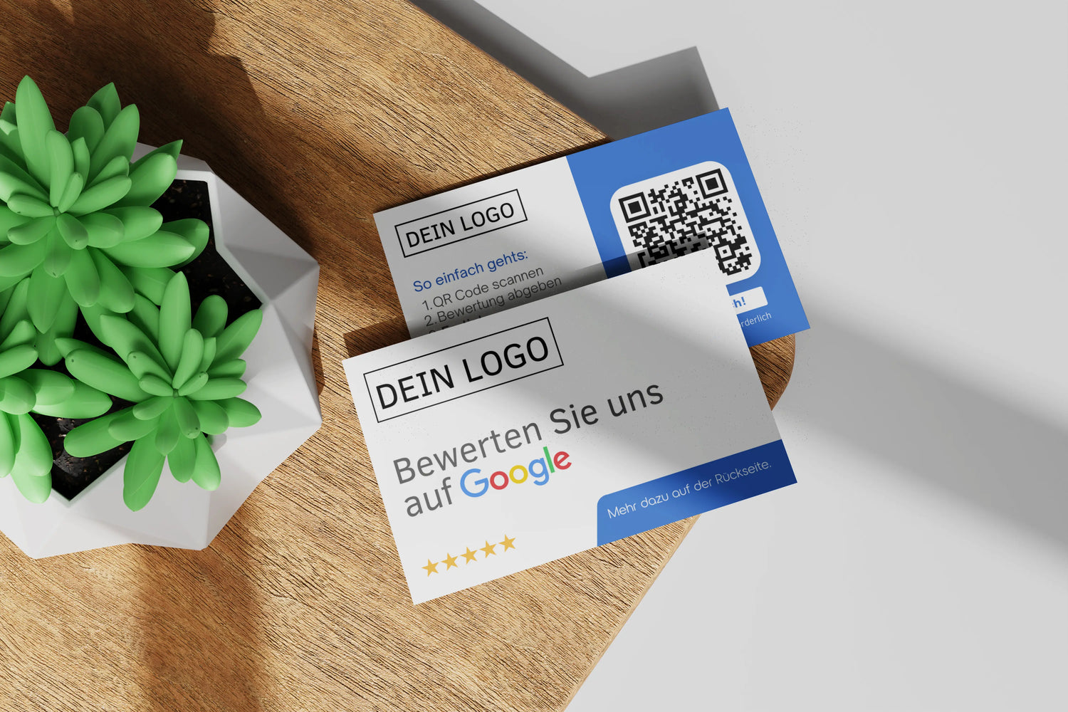 Steigern Sie Ihre Online-Bewertungen: Verwenden Sie Bewertungskarten, um Kunden dazu zu motivieren, positive Rückmeldungen zu hinterlassen. Erhöhen Sie so Ihre Sichtbarkeit und gewinnen Sie mehr zufriedene Kunden.